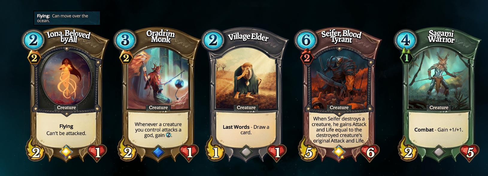 Le carte all’interno di Faeria posseggono tutte un costo in mana per essere evocate, e si distinguono in tre categorie diverse: