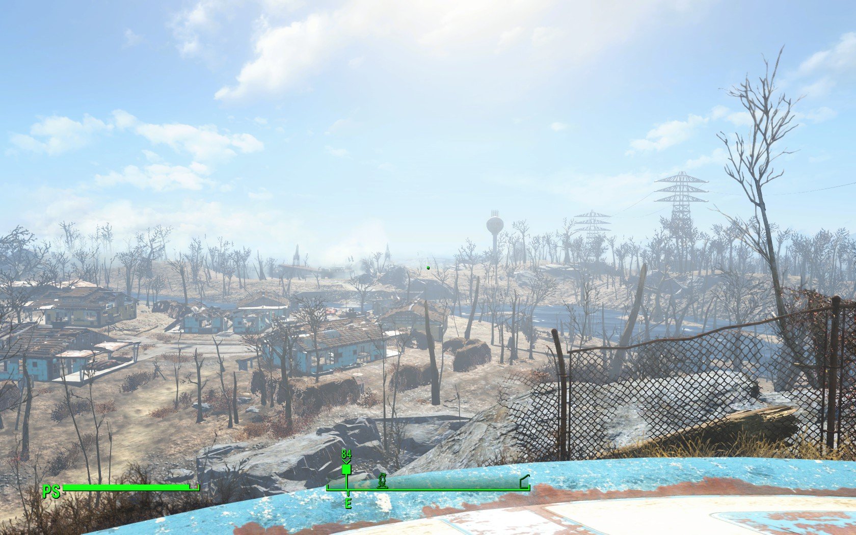 Al vostro risveglio e dopo essere usciti dal Vault, la prima visione di quello che un tempo era il luogo dove sorgeva la nostra città sarà devastante: gli sgargianti e vivi colori autunnali delle piante sono stati sostituiti da una scala di grigi tetri. La Zona Contaminata non sarà mai stata così cupa, grazie soprattutto al cambiamento che noi stessi abbiamo potuto vivere attraverso il nostro avatar che in pochi istanti ha visto cambiare radicalmente la sua vita, passando da pace e serenità a guerra e tristezza.