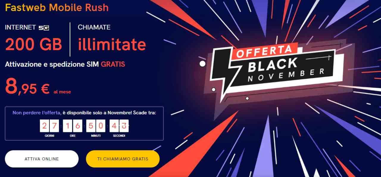 Fino al 30 del corrente mese l’operatore telefonico ha messo a disposizione di chi volesse “Fastweb Mobile Rush”, un’offerta lampo che prevede un pacchetto corposo composto da chiamate illimitate, 100 sms verso tutti, e 200 gigabyte di dati mobile con copertura in 5G. Il tutto alla modica cifra di 8.95 euro al mese, di conseguenza una tariffa alquanto interessante e che permetterà agli “smanettoni” della rete, coloro che utilizzano quindi i dispositivi mobile ad esempio per vedere le piattaforme di video streaming o per giocare, di godersi una bella vagonata di giga praticamente illimitati. Inoltre con Mobile Rush, Fastweb vuole rispondere anche alla concorrenza, a cominciare da Iliad, la compagnia telefonica storicamente più aggressiva, senza dimenticarsi di Very Mobile, che proprio per Halloween ha dato vita ad una promo da ben 300 gigabyte a 9.99 euro al mese. L’offerta “Fastweb Mobile Rush” è disponibile non per tutti, ma solo per coloro che intendono attivare un nuovo numero, quanto da portabilità da un altro operatore telefonico.
