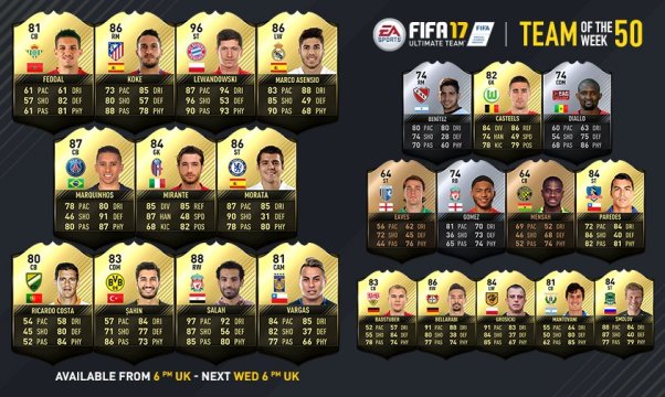 Questa la squadra della settimana di FIFA 17 Ultimate Team, aspettando l’arrivo dell’edizione 2018 che partirà il 27 settembre.