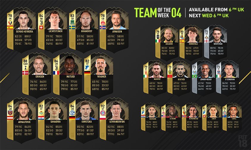 EA Sports ha condiviso la Squadra della Settimana, o TOTW, numero 4 di FIFA 18 Ultimate Team.