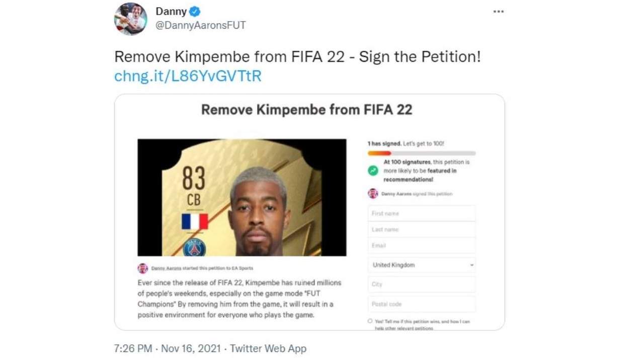 Come si legge nel post che Danny Aarons ha affidato a change.org il problema di Kimpembe è che si trasforma per milioni di persone in un “rovina fine settimana”. Secondo il giocatore: “ rimuoverlo dal gioco risulterà in un ambiente positivo per chiunque giochi”.