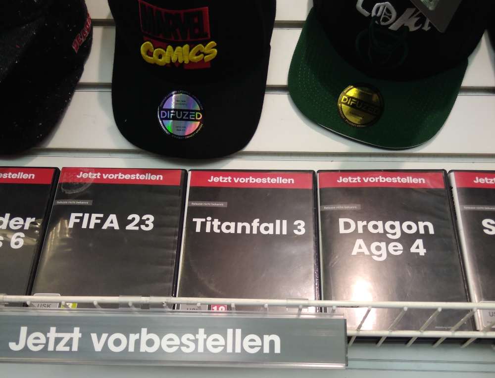 Ma questo non ha certamente spaventato una filiale di GameStop in Germania, che ha messo dei placeholder nel proprio negozio per dei preordini che possiamo considerare piuttosto coraggiosi. Oltre a FIFA 23, che oltre alla faccenda legata al nome è estremamente probabile che uscirà, ci sono infatti dei titoli parecchio coraggiosi. Si può preordinare Titanfall 3 ad esempio, e persino Dragon Age 4. Per completare la procedura è necessario lasciare 10 euro al negozio, che quindi confermerà il preordine per il cliente. Poi non resta che aspettare e in alcuni casi si parla di un’attesa lunghissima. Intanto c’è una grande novità per Fortnite.