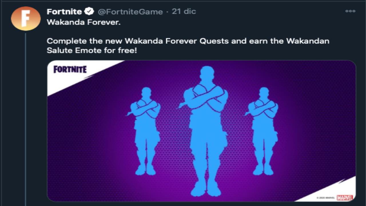 Complete the new Wakanda Forever Quests and earn the Wakandan Salute Emote for free! pic.twitter.com/NLByKF5TiR