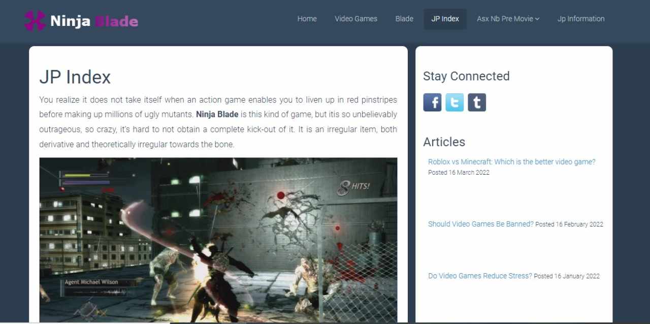Cercando di capire qualche cosa in più di quello che è successo abbiamo provato a seguire il link, ancora indicato, alla pagina ufficiale di Ninja Blade e ci siamo ritrovati indirizzati su un sito in cui è possibile ancora di trovare informazioni riguardo il gioco FromSoftware ma che, per esempio, negli ultimi mesi ha pubblicato un post ogni 16 del mese con cadenza regolare e con argomenti in generale legati ai videogiochi. Il mistero sembra sempre più infittirsi. Lo stesso strano sito ha aperto nel 2016 un profilo Facebook da cui rilancia i contenuti. La spiegazione più logica che ci viene in mente è che il povero Ninja Blade sia stato dimenticato ben prima di essere ritirato da Steam e che qualcuno sia riuscito a mettere le mani sul suo dominio. Ma in mancanza di dichiarazioni ufficiali qualunque teoria è valida.