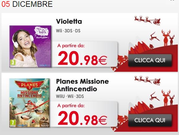 Il quinto giorno del “Calendario dell’Avvento” di GameStop è dedicato a due titoli disponibili su console Nintendo (Wii U, Wii, 3DS e DS). Come vi abbiamo riferito già nei giorni precedenti, i giochi proposti dal retailer saranno scontati per tutto l’arco della giornata e saranno acquistabili sia in negozio che tramite lo store online. Ecco le offerte di oggi: