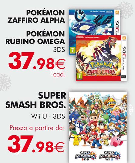 L’undicesimo giorno del “Calendario dell’Avvento” di GameStop è dedicato a due titoli destinati alle console di casa Nintendo. Nella giornata odierna (fino alle ore 23.59) troverete infatti a prezzi scontati sia Super Smash Bros. (entrambe le versioni), sia Pokémon Rubino Omega e Zaffiro Alpha. I giochi potranno essere acquistati presso i negozi oppure online. Ecco i prezzi offerti: