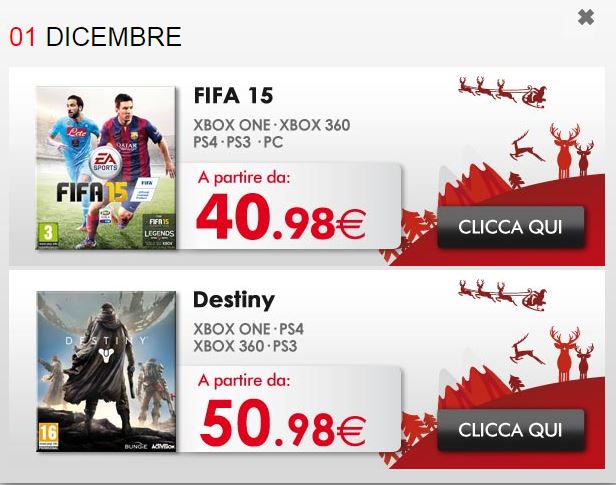È appena iniziato il mese di dicembre e come ogni anno, GameStop propone ai suoi clienti il “Calendario dell’Avvento”. Dal primo al 24 dicembre, il noto retailer proporrà varie offerte giornaliere, che andranno in vigore a partire dalla mezzanotte fino alle ore 23.59, per poi iniziare subito con nuove offerte. I prodotti scontati potranno essere acquistati sia in negozio che tramite lo store online. Nella giornata di oggi vi segnaliamo le seguenti offerte: