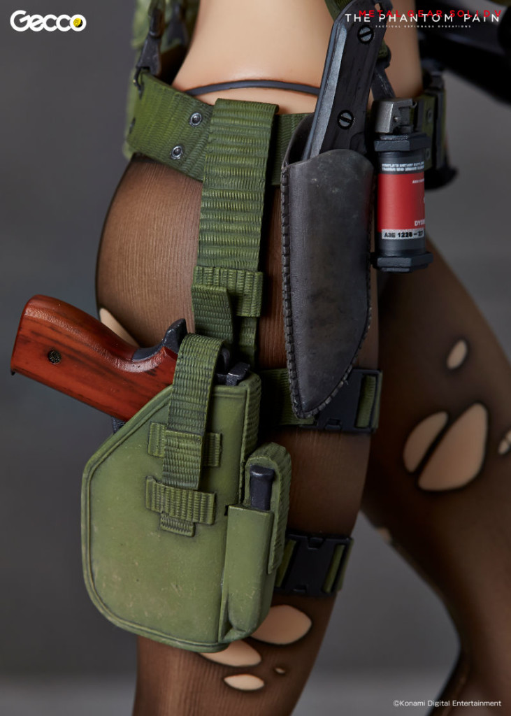 Alta circa 30 cm, la statua mostra in posa statica la sensuale cecchina del quinto capitolo di Metal Gear Solid con il suo fucile di precisione (che potrà essere esposto con o senza silenziatore).