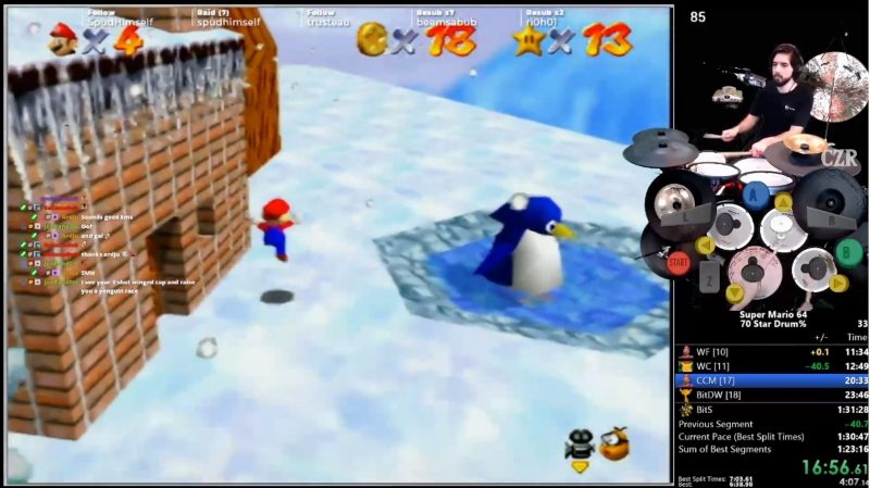 Lo speedrunner e streamer CZR ha portato un formato tutto nuovo sui suoi canali: ha giocato a Super Mario 64 utilizzando una batteria come controller. Esatto, una batteria, lo strumento musicale. Ha collegato a ogni pezzo dello strumento un diverso comando del classico controller e ha così registrato un nuovo record.
