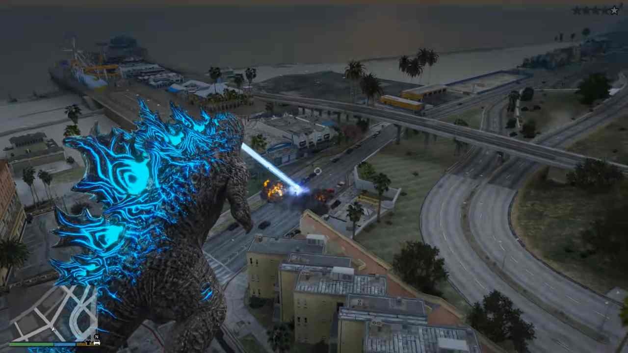 Grand Theft Auto 5: la mod del respiro atomico di Godzilla