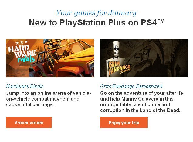 Come potete vedere, sembra proprio che i sottoscritti al servizio avranno la possibilità di mettere le mani su Grim Fandango Remastered e Hardware Rivals. Al momento non sappiamo quali giochi PlayStation 3 e Vita ci attendono e probabilmente ci toccherà aspettare l’annuncio ufficiale per scoprire cosa ci offriranno per la console old-gen e la portatile.
