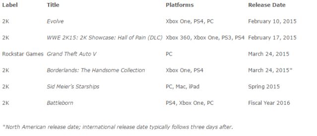 Abbiamo inoltre una panoramica dei titoli che il publisher ha intenzione di distribuire (con date americane, attenzione). Trovate l’immagine qui di seguito.