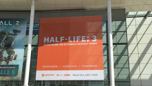 Nei dintorni del padiglione fieristico campeggia infatti un ampio poster che titola proprio Half-Life 3. In realtà, tradotto dal tedesco, la frase recita: “Half-Life: 3 redattori che lo hanno giocato all’epoca”.
