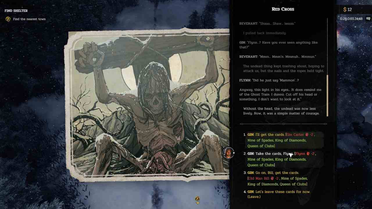 La mappa ritorna ma è estremamente più curata. Ora muoveremo la nostra banda lungo tutto il tragitto, con la possibilità di avvicinarci ad alcune zone ed incontri speciali e secondari e prendere delle decisioni interessanti. Ad esempio scegliere chi tra i nostri avventurieri dovrà mettere la mano in un cadavere putrefatto e crocifisso per pescare delle carte da gioco, che danno dei bonus ai nostri antieroi, al costo di una ferita alla mano.à
