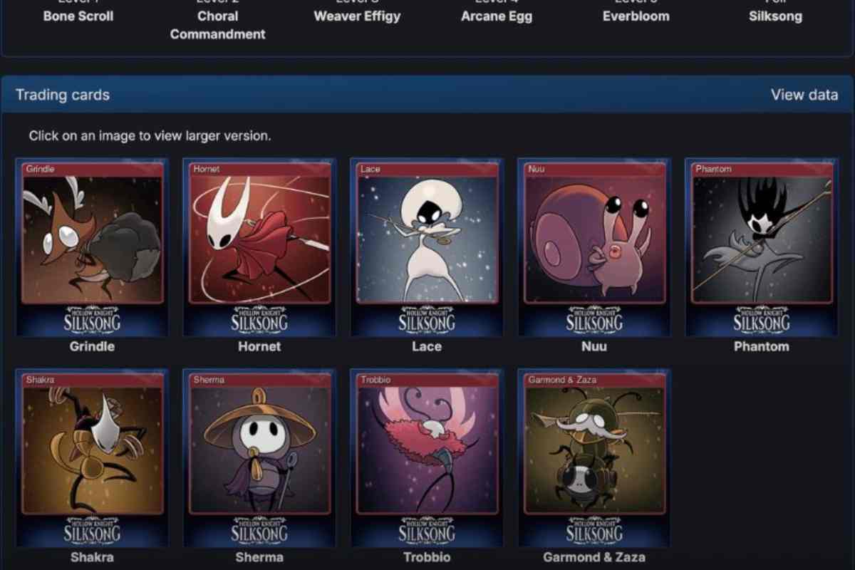 Ma perché parlare di spoiler? Perché quello che si legge come etichetta soprattutto delle card che dice molto di chi incontreremo in questo secondo capitolo. Per esempio c’è l’immagine di un’Arcane Egg, segnale che questo elemento del primo gioco torna anche dentro Hollow Knight: Silksong.