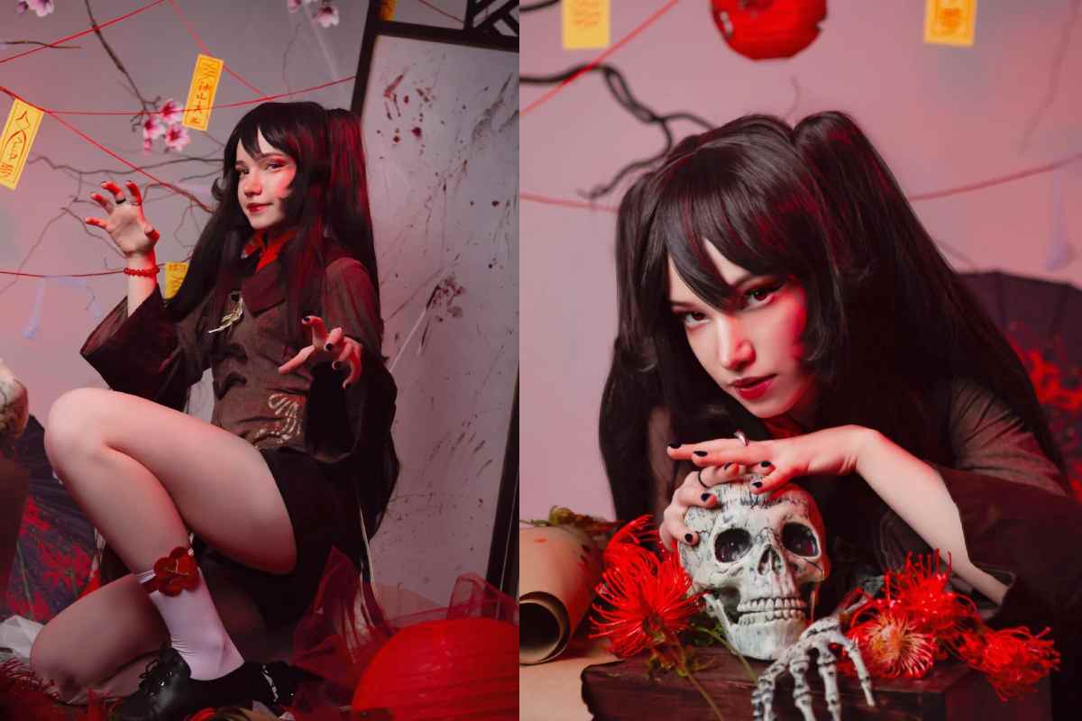 La versione della cosplayer vlenvv, però, ci mostra Hu Tao in una versione che è ancora più gotica e vicina alle ambientazioni orientali. Nel photoshoot possiamo apprezzare non solo tutti i dettagli che sono stati messi nella costruzione del costume, ma anche l’interpretazione che vlenvv dà di questo personaggio di Genshin Impact.