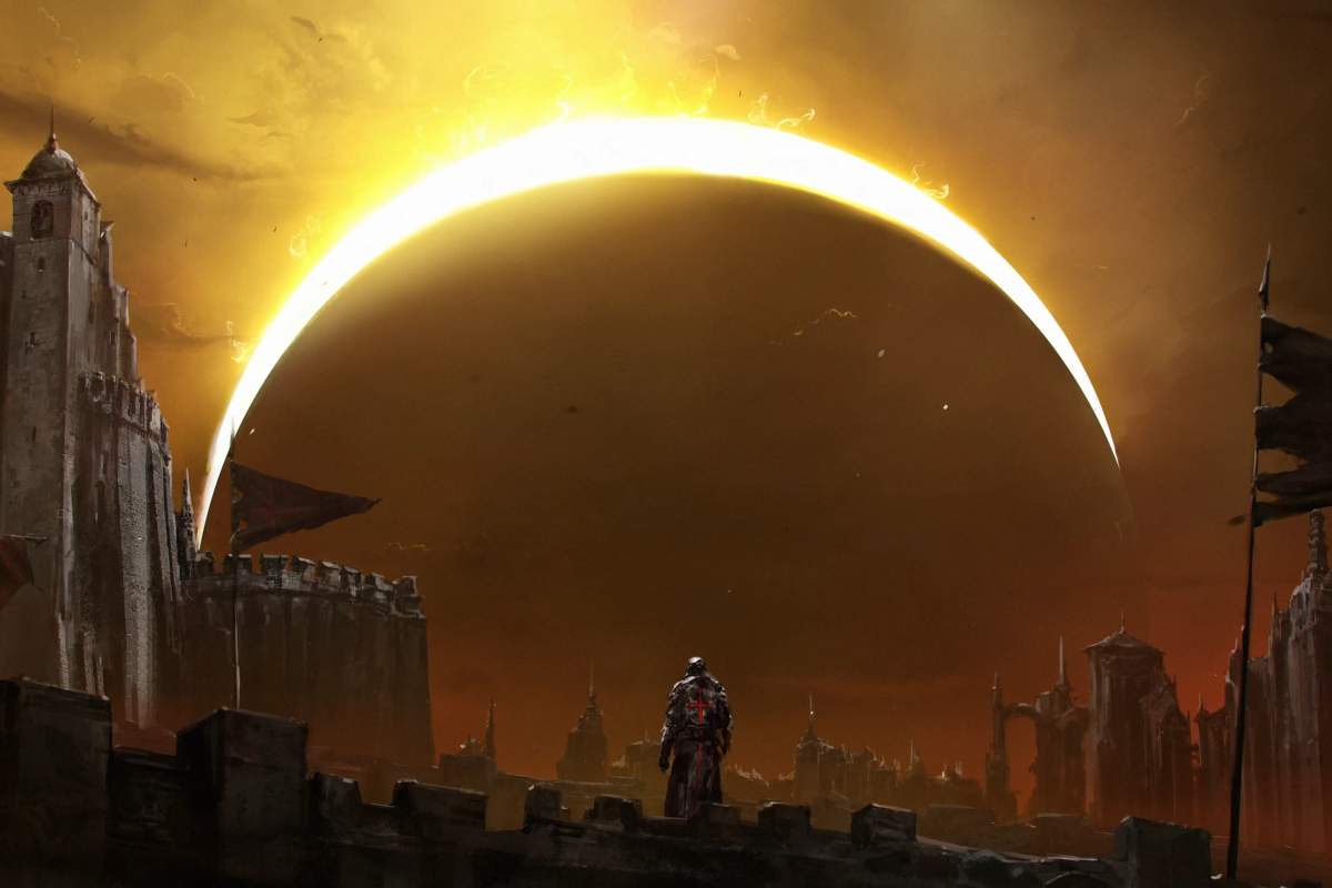 C’è per esempio Jeff Gardiner che ha lavorato per 15 anni dentro Bethesda a ben tre capitoli di Fallout come pure cioè Charles Staples, uno dei nomi più importanti per Thew Outer Worlds. Tutti con la voglia di provare qualcosa di nuovo. Il trailer mostra, sotto forma di concept art animati, parte di quella che è l’ambientazione di questo primo grande sontuoso progetto tripla A: l’architettura è occidentale e medievale e sembra quindi di trovarsi dentro un nuovo Elder Scrolls con una eclisse che campeggia al centro e si chiude come un occhio che sbatte le palpebre e, quando la cosmica palpebra si riapre, il mondo è totalmente cambiato, così come il protagonista che passa dall’essere un semplice cavaliere con una croce dietro la schiena in qualcosa di molto più fantasy e distorto, mentre l’architettura, portoghese ripetono più volte sul sito ufficiale, si frantuma.