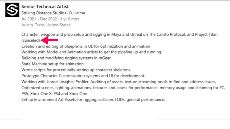 Sulla sua pagina Linkedin, l’ex artista tecnico senior di Striking Distance Studios Sean Hewitt ha dichiarato di aver lavorato al gioco Project Titan, che alla fine è stato cancellato. Intanto ci sono terribili notizie per i giocatori con PS5.