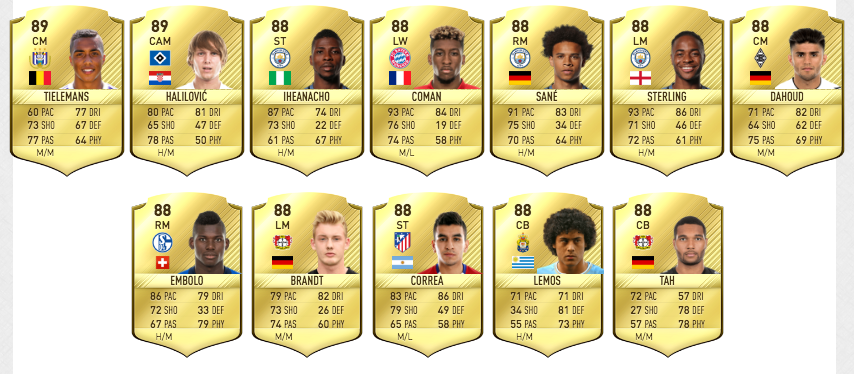 Le stelle in panchina includono Coman del Bayern Monaco, e Iheanacho e Sterling del Manchester City.
