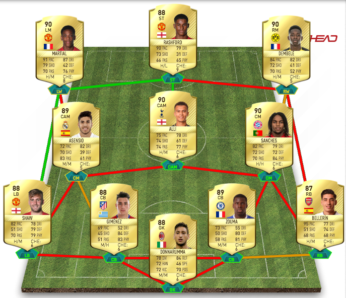 L’attacco è composto da Martial e Rashford del Manchester United, e Dembelé del Borussia Dortmund. I Diavoli Rossi possono contare anche sul terzino Shaw in squadra.