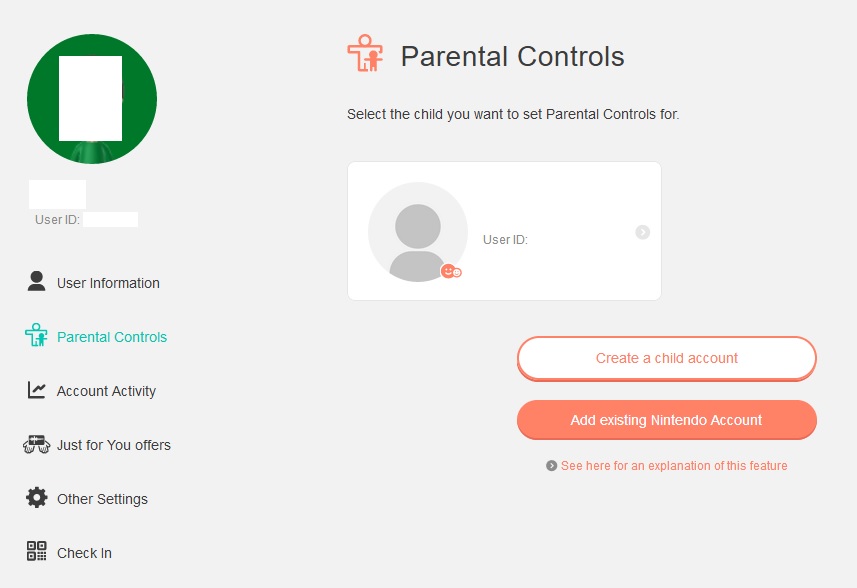 • Parental Control: sappiamo già che verrà lanciata un’app per smartphone dedicata a questa funzionalità, ma a quanto pare i genitori potranno intervenire anche via web accedendo alla pagina personale dell’Account Nintendo. Si potranno effettuare modifiche all’account per bambini, impedire gli acquisti sul Nintendo eShop, impostare delle restrizioni legate all’età e limitare la funzione Amici Suggeriti. La restrizione per gli acquisti si applica solo a Nintendo Switch: su Nintendo Wii U e 3DS sarà ancora necessario intervenire individualmente utilizzando le app dedicate.