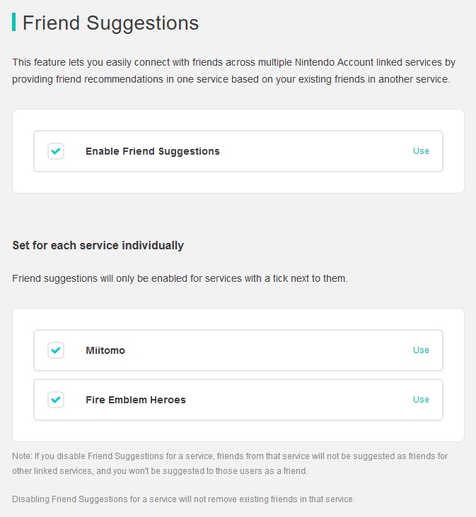 • Amici Suggeriti: questa nuova funzionalità suggerisce nuovi amici in un servizio, in base a quelli giù presenti in un altro servizio collegato allo stesso account. Ad esempio, il sistema potrebbe suggerire in Miitomo utenti incontrati in Fire Emblem Heroes.
