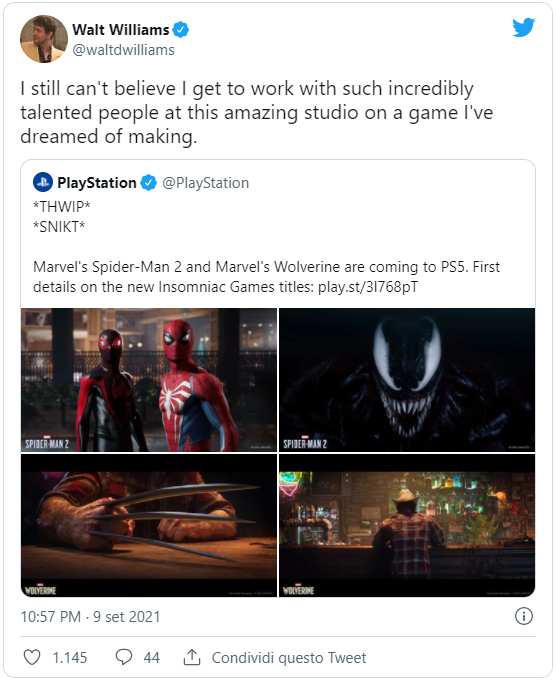 Il suo talento l’ha portato ad essere scelto per scrivere la sceneggiatura, insieme ai suoi colleghi, del nuovo videogioco basato sulle gesta dell’eroe Wolverine. Walt Williams è da poco che si è aggiunto al team di Insomniac Games, ma a quanto pare, questo era il suo sogno da sempre.
