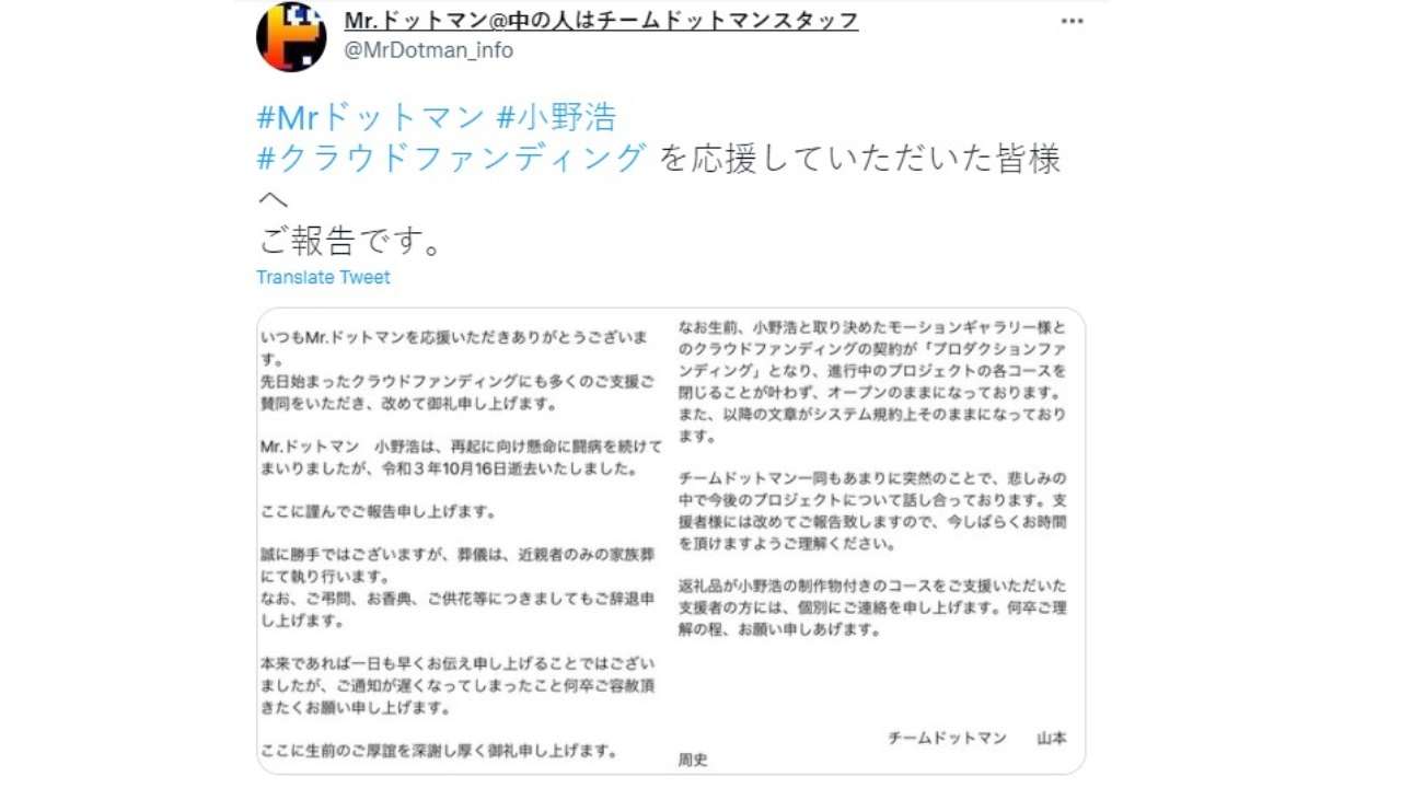 Sia che abbiate giocato con Pac-man sia che abbiate soltanto visto un vecchio cabinato impolverato o magari siete tra quelli che apprezzano adesso la pixelart sappiate che probabilmente, anzi no, sicuramente dovete ringraziare proprio Hiroshi Ono Mister DotMan. さよなら, 先生.