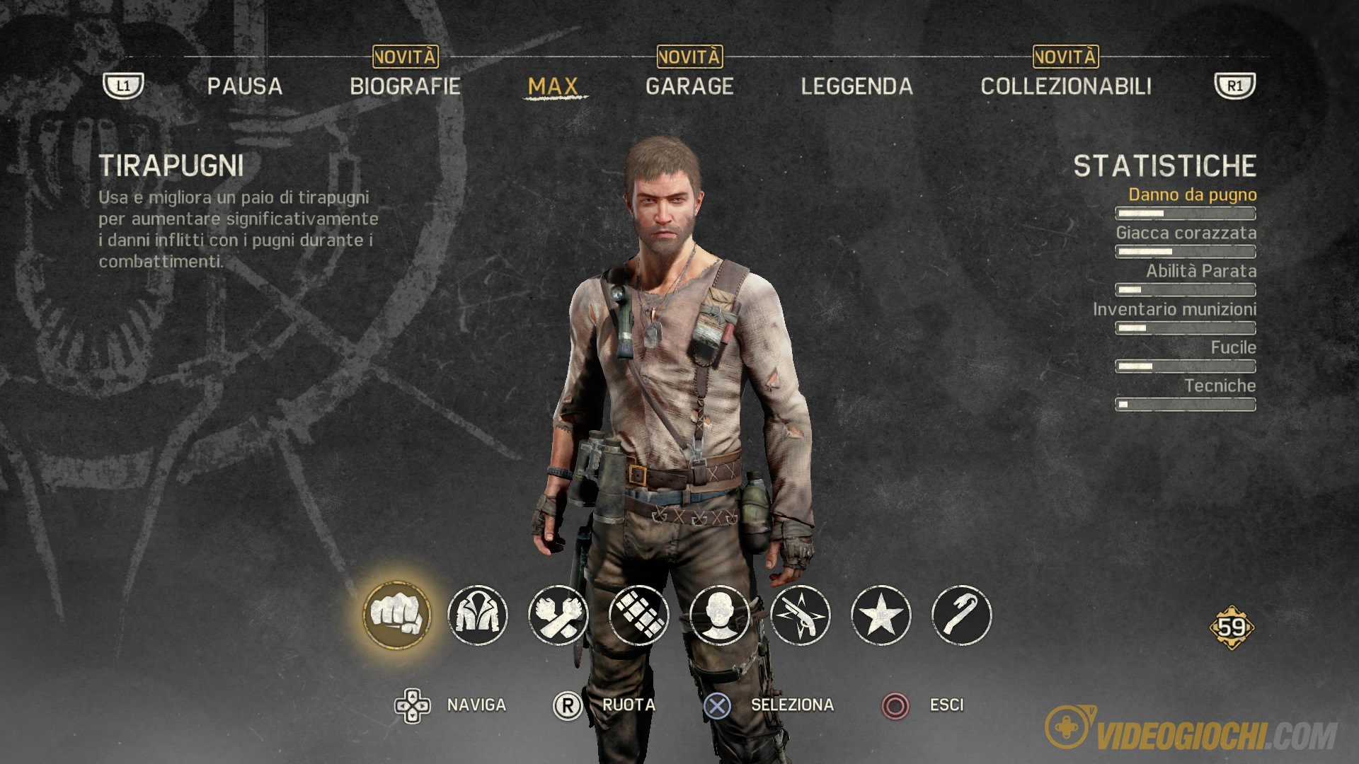 Questa deve essere considerata come un secondo personaggio giocabile: così come Max, anche il vostro mezzo può essere potenziato nel corso della storia; tramite il menu è possibile acquistare (la nostra valuta) nuovi equipaggiamenti e potenziamenti. Per incrementare le abilità del personaggio dovete invece recarvi da un NPC chiamato Griffa, che in cambio di speciali gettoni risveglia il vero Max, donandogli per l’appunto nuove abilità. La Magnum Opus può invece essere potenziata con l’aggiunta di nuovi pezzi e nuove armi sia durante la storia, sia mettendo in qualsiasi momento il gioco in pausa e accedendo così al garage. Chumbucket può dotare il veicolo anche di potenti armi, come un arpione o un fucile da cecchino. Inoltre, essendo un ottimo meccanico riparerà l’auto facendola tornare come nuova ogni volta che che sarà necessario.