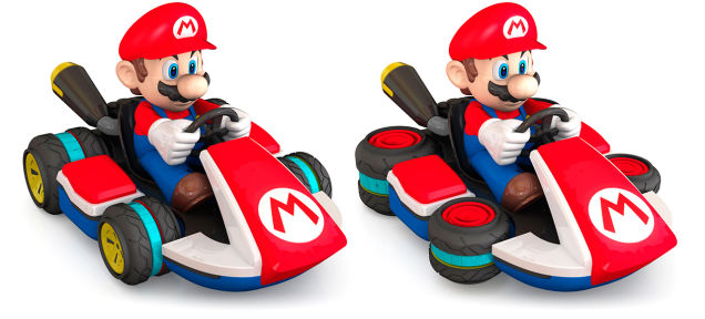 La versione telecomandata di Mario con il suo kart sembra esattamente come la sua controparte in-game: le ruote possono persino mettersi in posizione piatta per trasformare il veicolo come potete vedere nell’immagine in calce alla notizia.