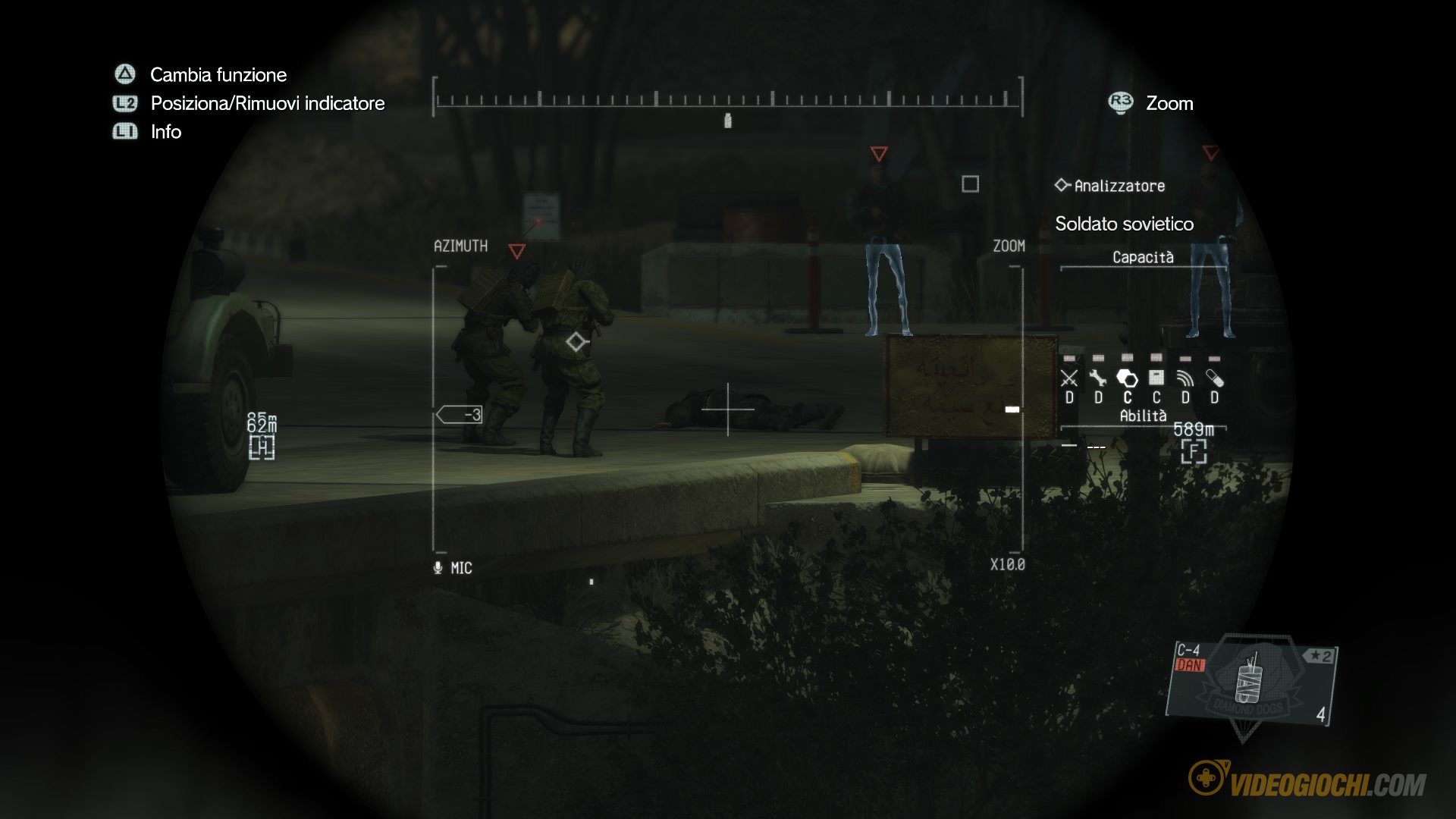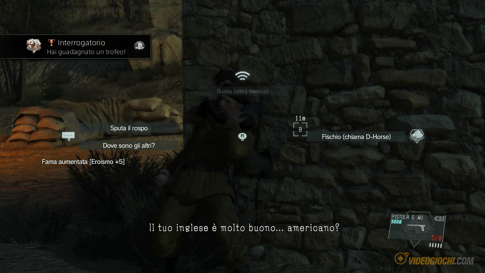Fatta questa premessa, il gioco inizia a proporre una serie di missioni in stile MGS Peace Walker dove Snake deve portare a termine alcune offerte di lavoro commissionate da clienti che necessitano dei servizi dei DD, nelle quali bisogna eliminare un determinato soggetto o distruggere qualcosa e così via. Di fatto, fino alle missioni 11-12 non c’è alcun progresso nella storia se non qualche incontro con forze nemiche appartenenti a Cipher (i TESCHI) e qualche pista seguita da Miller per scoprire i piani di Skull Face.