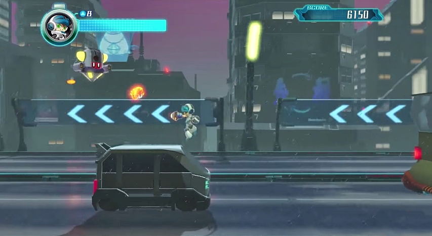 La serie di MegaMan è effettivamente molto presente, soprattutto durante i primi minuti di gioco è infatti impossibile non pensare a uno dei primi titoli. Ci vuole poco però per essere trascinati nel gameplay di Mighty No. 9 che, anche se non è presente un timer, spinge il giocatore a mantenere un ritmo piuttosto elevato e frenetico.