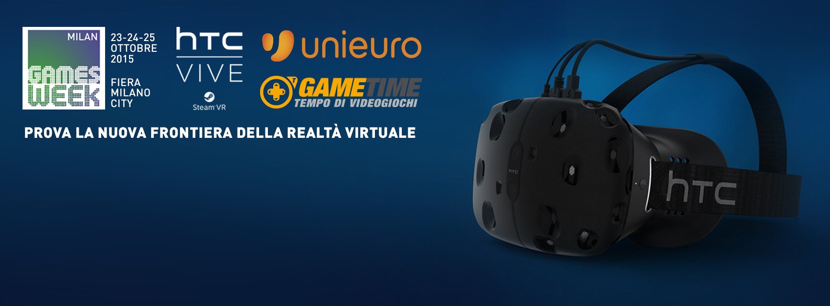 Ovviamente, anche noi di GameTime non mancheremo all’appello e presso il nostro stand, anche quest’anno in collaborazione con UNIEURO, potrete provare gratuitamente e in anteprima italiana il visore VR HTC Vive.
