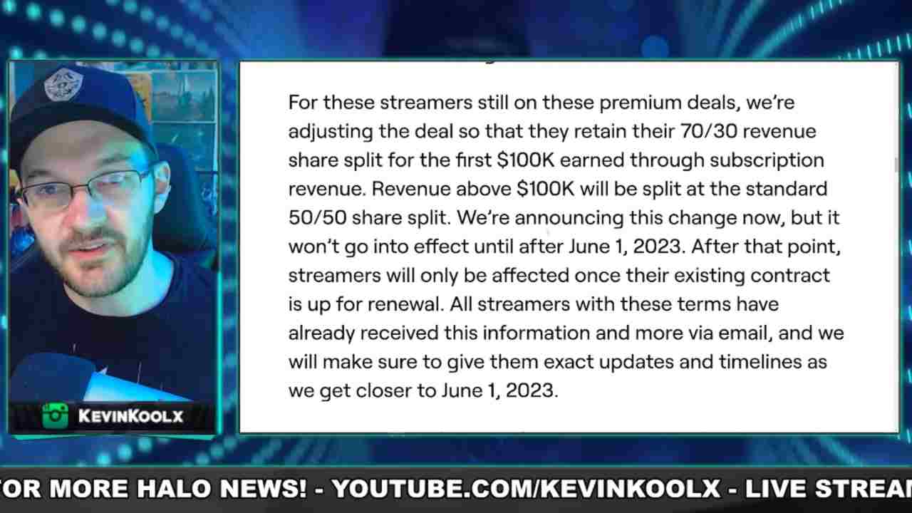 Per ora lo standard è una divisione equa dei profitti tra Twitch e i content creator anche se esistono alcuni accordi particolari, che vengono definiti Premium, con gli streamer più di successo che riescono ad avere quindi un accordo per cui trattengono il 70% dei guadagni con Twitch che si accontenta del 30%. Queste percentuali sono ciò su cui ha deciso di lavorare la piattaforma di streaming. È stato annunciato che gli streamer che hanno attivo un accordo Premium guadagneranno il 70% dagli abbonamenti solo sui primi centomila dollari guadagnati mentre invece la percentuale scenderà al 50% superata la soglia dei centomila dollari.