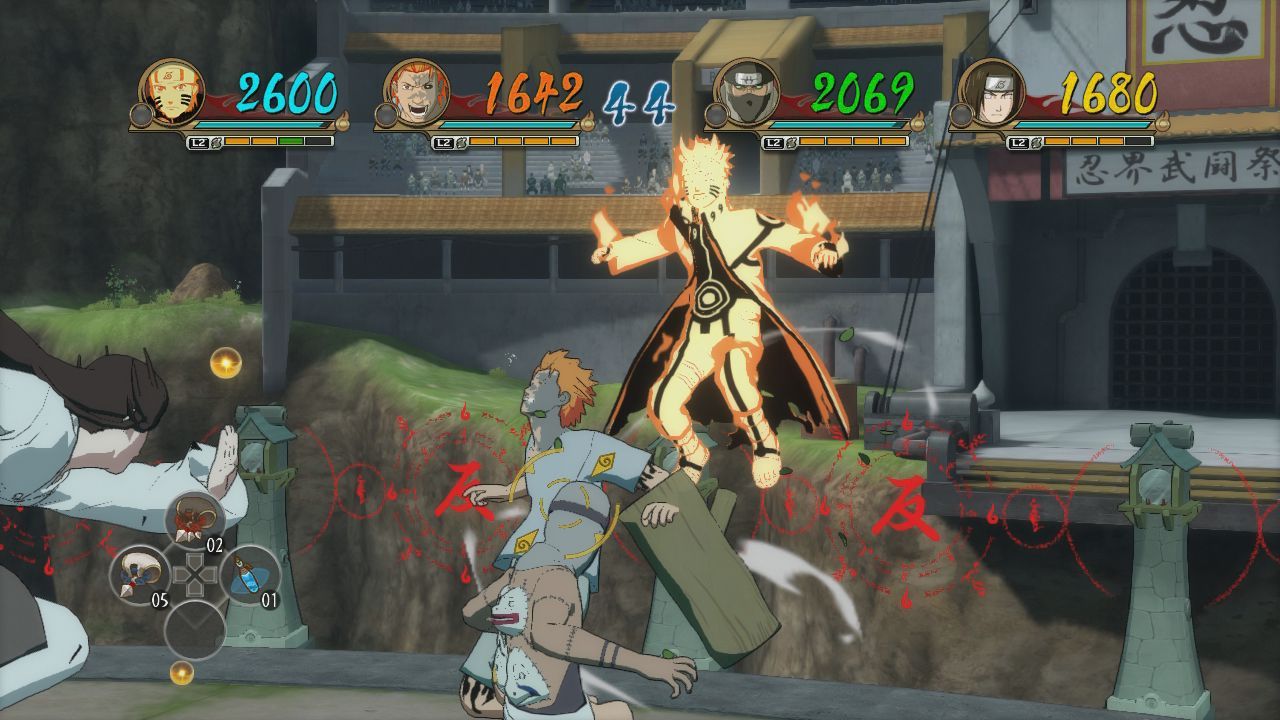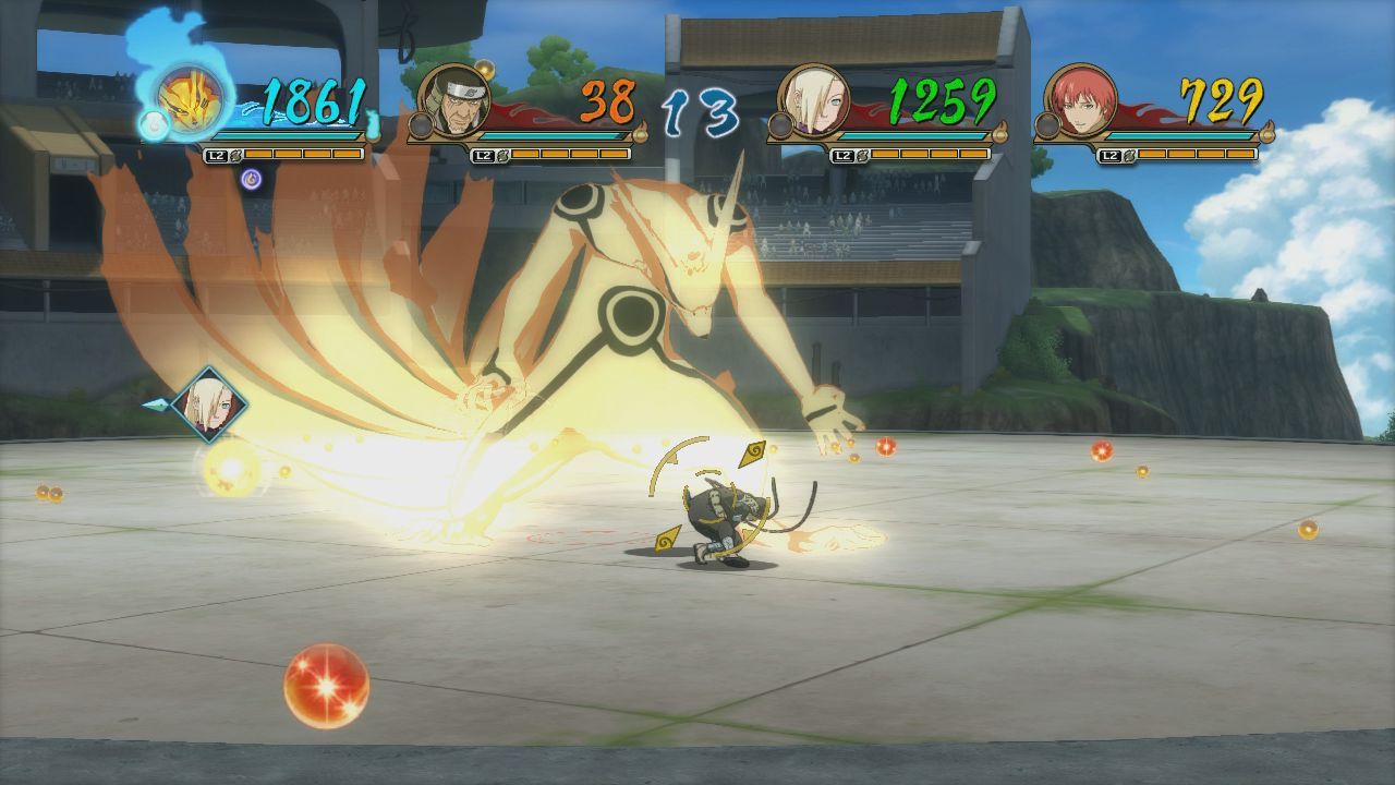 Tale intenzione è chiara fin dall’impostazione narrativa generale: invece che seguire più o meno pedissequamente l’epica di Kishimoto, si imbastisce una modalità del tutto diversa, il Torneo Mondiale Ninja, una grande adunata per decidere chi sarà il ninja migliore di tutti. Scelto un personaggio, quindi, si tenterà la scalata, partendo dal grado D fino all’S; il torneo si svolge principalmente in una serie di battaglie a 4, dove vince chi allo scadere del tempo ha più Sfere Battaglia degli altri, e gli avversari vanno colpiti per far sì che lascino cadere le proprie. Già in questa modalità, però, si incominciano a vedere i primi difetti, rappresentati da un “fattore caos” fin troppo preponderante e una IA non proprio brillante, tanto che per compensare si è provveduto a inserire degli appositi “disturbatori” nelle arene, che appaiono casualmente e possono essere solo evitati.