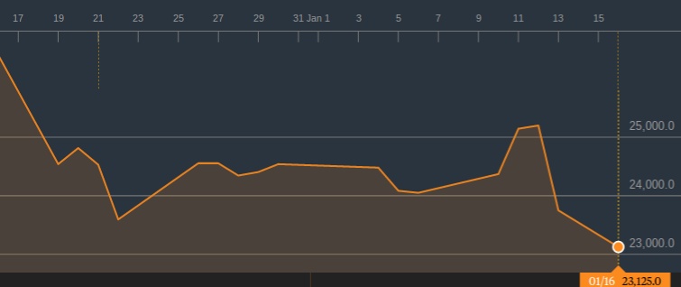 Come potete vedere dall’immagine sottostante, oggi 16 gennaio il titolo è calato di un ulteriore 2,32%, scendendo fino a 23,125.0.