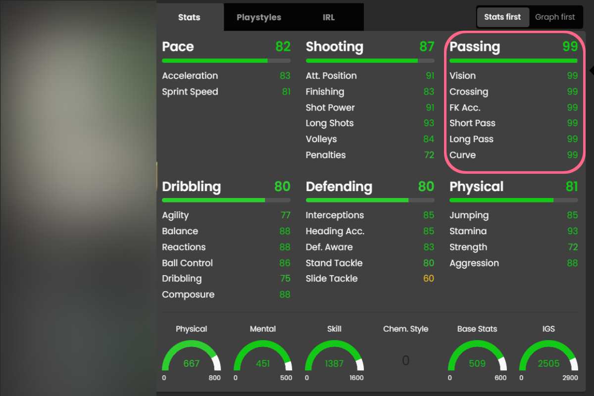 La carta su FC 25 che ha 99 di passaggio – foto via Futbin – Videogiochi.com