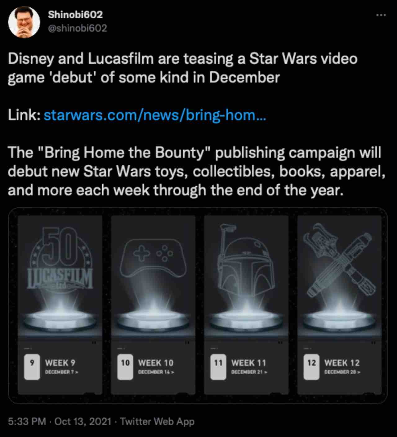 La comunicazione in questione prende il nome di Bring Home the Bounty, ed è il giorno 14 dicembre che ci interessa in particolare modo. L’iniziativa si sviluppa in diverse settimane con l’arrivo di collezionabili, libri, giocattoli e così via. La decima settimana cade proprio in quel preciso giorno, da spuntare sul calendario. È previsto, secondo l’icona dell’annuncio, un qualche cosa che ruota attorno al mondo dei videogiochi. Incrociamo le dita nella speranza che sia qualche cosa di nuovo e non un contenuto aggiuntivo!