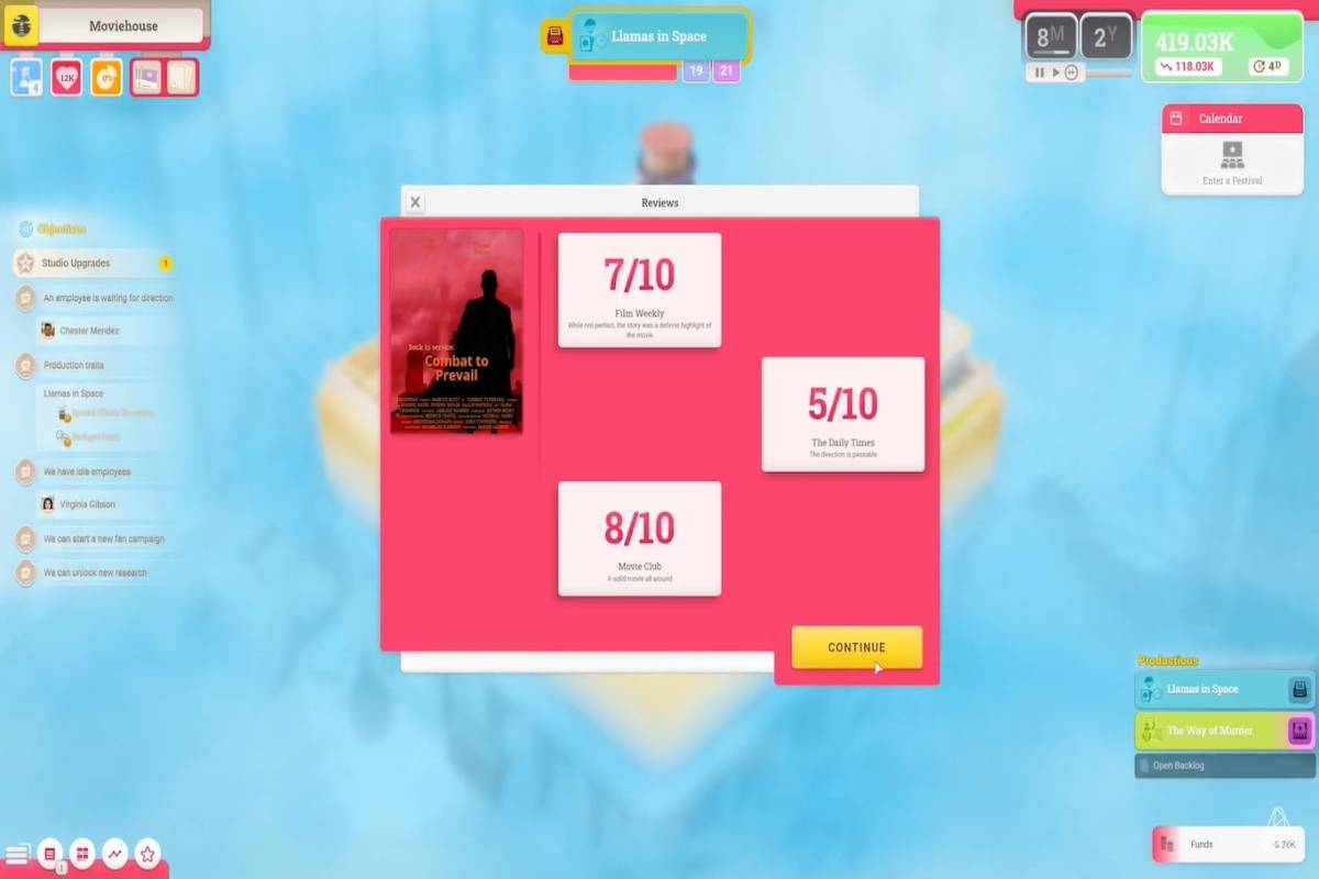 Moviehouse è un videogioco simulativo sviluppato da Odyssey Studios e pubblicato da Assemble Entertainment. Ispiratosi prorpio a The Movies, il titolo mette il giocatore sulla sedia del regista, chiedendogli di prendere parte ad ogni decisione possibile per creare dei film. Sarà assolutamente necessario studiare il team ideale per il prodotto che stiamo cercando di lanciare sul mercato, tenendo soprattutto conto di un problema che spesso mette le manette anche ai migliori registi esistenti: il budget.