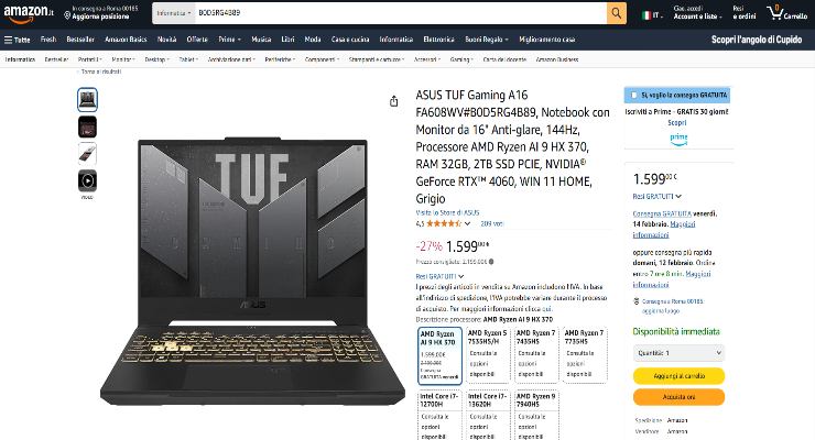 Nuovo PC da gaming ASUS ad un prezzo incredibile su Amazon