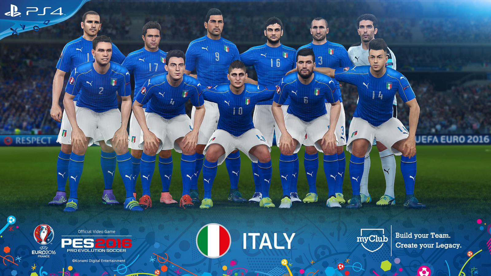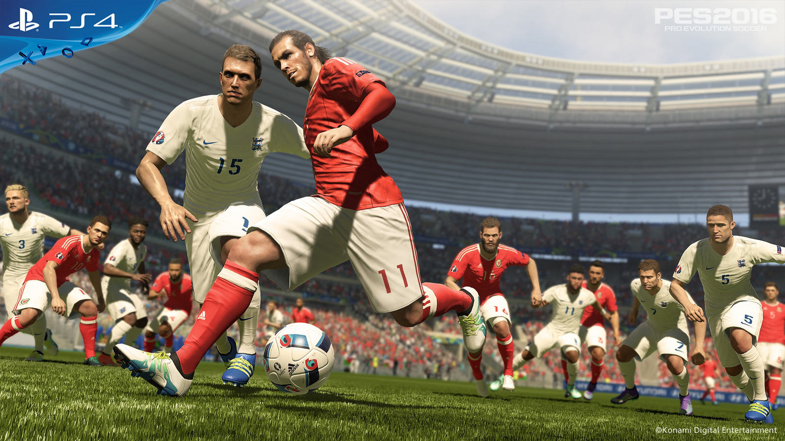 “Il gioco, che esce per PS4 e PS3 con il campione gallese Gareth Bale in copertina, comprende una versione completa e aggiornata di PES 2016 più tutti i contenuti aggiuntivi di UEFA Euro 2016. Ciò significa non solo migliaia di nuovi aggiornamenti alle statistiche e centinaia di facce di giocatori incredibilmente dettagliate, ma anche una fantastica modalità coppa UEFA Euro 2016″.