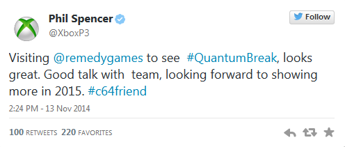 Successivamente alle sue visite sono stati pubblicati diversi tweet in cui si dichiarava entuasiasta avendo potuto provare in particolare Fable Legends e Quantum Break.