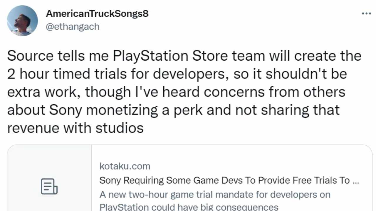 Su Twitter dove la notizia è rimbalzata ovviamente tanti si sono indignati soprattutto perché l’idea di dover creare un contenuto di due ore significa per gli sviluppatori lavoro in più. Ma, sempre da Twitter, arriva la notizia che non dovrebbero essere gli sviluppatori a creare questi contenuti ma saranno i team interni del PlayStation Store. La questione si è quindi spostata su un altro piano del pensiero: i team interni di PlayStation devono avere accesso al codice sorgente del gioco in maniera tale da poterne tirare fuori una demo da due ore, il che significa che gli sviluppatori stanno offrendo a Sony il loro lavoro in toto e senza filtri, e in più i team di sviluppo originali non riceveranno nessun compenso per questo elemento aggiuntivo. Certo, non facendo loro il lavoro qualcuno sul social dell’uccellino azzurro si domanda perché si lamentino di non ricevere denaro in cambio.