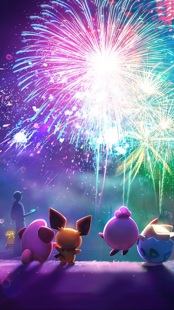 Come potete notare dall’immagine di seguito, la nuova schermata di caricamento vede alcuni dei pokémon più celebri osservare da spettatori incantati dei meravigliosi fuochi d’artificio.