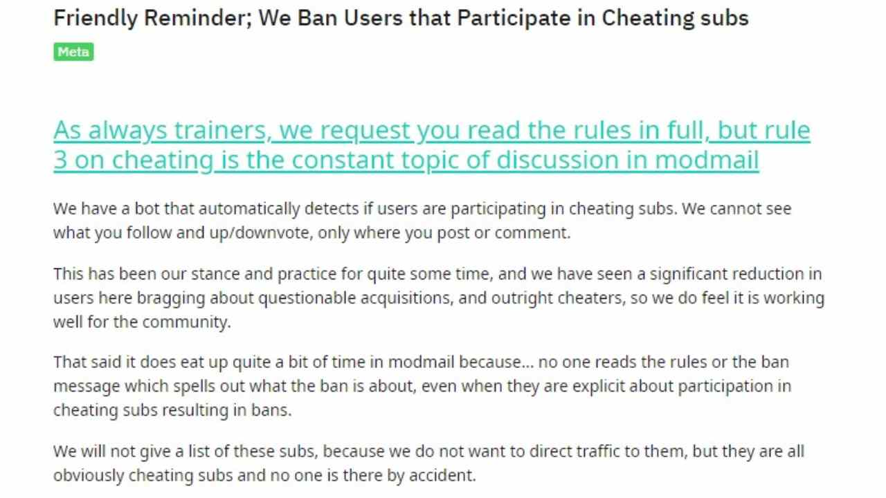 Nel forum di Reddit dedicato al gioco è stato pubblicato tra l’altro un post in cui viene spiegato che chi viene sorpreso a partecipare ai gruppi che promuovono o che utilizzano sistemi di cheating viene automaticamente bannato. Un altro sistema per scoraggiare l’utilizzo di mezzucci?