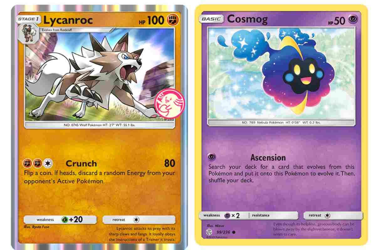 Con questa mossa si può in pratica effettuare un cambio di Pokémon, spostando Cosmog in panchina e facendo entrare in campo un altro Pokemon che invece aspettava proprio seduto in panchina. Per la carta Lycanroc la mossa è invece la mossa Sgranocchio, che produce 80 punti danno.