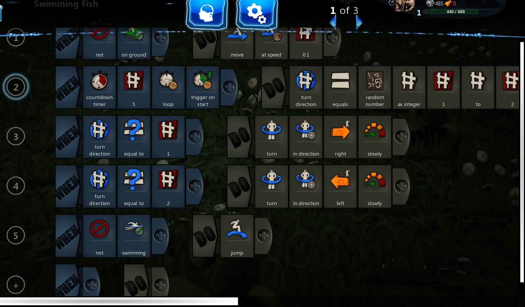 Incredibilmente la varietà di giochi che si possono sviluppare è molto vasta, dai più semplici, come i cloni del Tetris, ai platform a scorrimento fino alle avventure con una spolverata di meccaniche GdR. Passerete parecchio tempo a sperimentare il funzionamento del cosiddetto “cervello”. Questo non è altro che un sistema che fa corrispondere a un dato input, selezionabile tra i molti messi a disposizione del menù, un determinato evento, come l’azione “cammina” o “salta”.