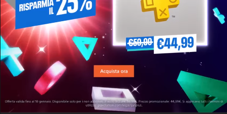 Pertanto se non siete iscritti al Ps Plus, questo è il momento perfetto per farlo, dato che pagherete 15 mesi una cifra molto conveniente. E se invece avete già l’abbonamento attivo, comunque allungarlo di ulteriori 12 mesi a 45 euro non è di certo un pessimo affare. Speriamo soltanto che Sony presenti un po’ meglio le sue offerte in futuro, dato che la scritta presente nella pubblicità, in basso, è estremamente piccola e sfocata.