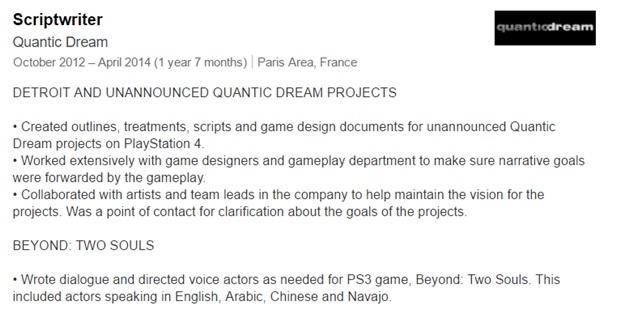 Da allora sono stati rivelati ben pochi dettagli sul gioco diretto da David Cage. A giudicare dal profilo Linkedin di due ex dipendenti, tuttavia, sembrerebbe che Quantic Dream sia al lavoro anche su un altro progetto non ancora annunciato.
